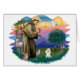 Saint François, patron des animaux et personnages aimés qui croisent des lignes confessionnelles, est représenté ici avec un Toy white Poodle. La figure de Saint François elle-même a été adaptée du chef-d'oeuvre de Giotto du XIVe siècle et un nouvel arrière - plan a été créé par Jean Fitzgerald