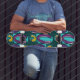 Ajoutez une touche graphique audacieuse à votre voyage avec ce jeu de skateboard doté d'un motif géométrique dynamique en violet, turquoise et jaune. Inspiré par le pop art ludique et les formes abstraites, ce design est parfait pour les patineurs qui aiment les planches uniques, colorées et attrayantes.