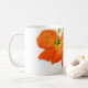Une tasse blanche décorée de pavots islandais orange/jaune