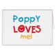 Poppy Loves Me T-shirts, cartes, autocollants, sacs de costumes, et plus avec coloré rouge, jaune, et bleu texte et conception du coeur. Ce Poppy Love me vêtements et cadeaux fera sourire le pavot !