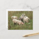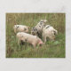 Cette jolie carte postale présente une belle photo d'un groupe de cochons mignons dans un champ. Certains cochons se balancent sur la terre tandis que d'autres regardent.