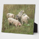 Cette magnifique plaque présente une belle photo d'un groupe de cochons mignons dans un champ. Certains cochons se balancent sur la terre tandis que d'autres regardent.