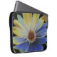 Ce magnifique sac pour ordinateur portable présente une photo magnifiquement détaillée d'une fleur de marguerite africaine. La photo a été numériquement modifiée, ce qui a donné une fleur avec la moitié de ses pétales bleu et la moitié d'entre eux une couleur jaune doré.