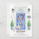 Annoncez votre nouvelle adresse avec notre faire-part élégante avec une porte d'entrée Dalmatienne, bleue, tapis de bienvenue, ardoise, topiaires et une couronne fleurie posée sur un arrière - plan en brique grise.