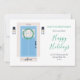 Faites savoir à vos amis et à votre famille que vous avez déménagé avec ce faire-part magnifiquement conçu. Cette carte simple a une porte bleue moderne décorée de couronnes de vacances.