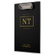 Un porte - bloc audacieux et élégant en noir et or avec votre monogramme personnalisé. Parfait pour les enseignants, les professionnels ou l'image de marque d'entreprise. Personnalisez avec vos initiales pour une utilisation quotidienne.