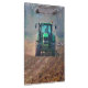 Préparation pour le next crop. The tractor plows (ploughs) the field and wild birds look for food in the freshly turned soil. Watercolor England.