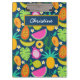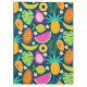 Ce porte - bloc personnalisé porte des fruits tropicaux colorés et mignons avec ananas, papaye, fruit du dragon, mangue, banane, pastèque et citron avec des feuilles tropicaux sur arrière - plan sombre