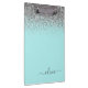 Un presse-papiers de planification de monogramme pailleté bleu aqua - turquoise et argent. C'est le cadeau parfait pour un anniversaire sweet 16, un mariage, une douche de mariée, un anniversaire, une baby shower ou une soirée d'enterrement de vie de jeune fille pour quelqu'un qui aime le luxe clinquant et les styles chics.