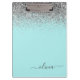 Porte-bloc Aqua Bleu Turquoise Argent Pailleté Monogramme