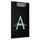 Black and Aqua Turquoise Blue Monogram Nom Planning Porte - bloc. Cela rend le cadeau parfait pour 16 ans, mariage, douche nuptiale, anniversaire, baby shower ou bachelorette pour quelqu'un qui aime le luxe glam et les styles chic.