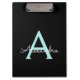 Porte-bloc Aqua Teal Blue Script Girly Monogram