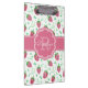 Plaque florale rose monogrammée sur le dessus d'un motif d'aquarelle blanche, féminine fraise et vigne. Cadeau personnalisable avec un nom et un modèle monogramme.