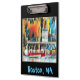 Art Déco Boston Swan Boats sur porte - bloc arrière - plan noir. Un porte - bloc conçu de façon créative avec une image de Boston Swan Boats sur un arrière - plan noir à l'aide d'un filtre art déco appliqué. Par celeste@khoncepts.com