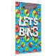 Vert, bleu et rouge, bang, porte - bloc de jeu de palettes. Cool grunge le texte en détresse avec un arrière - plan en or disque et un panier de golf disque à l'intérieur du texte.