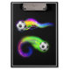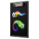 Ce porte - bloc est montré en noir avec un imprimé de balles de football flamboyantes. Customisez cet objet ou achetez tel quel. Image stock