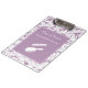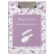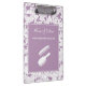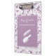 Gardez les formulaires clients pour votre salon de coiffure avec ce porte - bloc moderne de boutique de beauté fleurie violet et blanche, brosse et logo peigne. Personnalisez en ajoutant le nom de votre salon et votre site Web à ce joli design de fleurs violettes lavande.