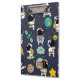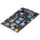 Graphique de clipart astronaute, Espace extra-atmosphérique : astronaute tenant ballon comme une planète, une fusée, étoiles, icône OVNI, icône satellite spatial, planète Saturne, vaisseau spatial, et d'autres. Sur Oxford Blue (bleu marine) arrière - plan.