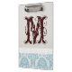 Blue Filigree Damask White Grey Tourbillonnant Design Papier Texture Papier-Texture Monogramme Carte Clip Initiale Personnalisée