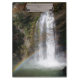 Un porte - bloc d'une photo d'une cascade avec un arc en ciel en arcade au fond.