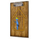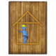 Pour tout bricoleur, travailleur de la construction, ou charpentier. Travailleur de la construction illustré de bande dessinée avec la ceinture de casque antichoc et d'outil à l'intérieur du cadre pour une maison.