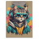 Porte-bloc Chat Super cool avec casque à écouter de la musiqu