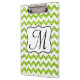 Parties scintillant moderne vert chaux Chevron Zig Zag Tissu de bande Imprimer Motif Monogramme Carte Clip initiale Personnalisée