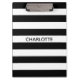 Porte-bloc Chic rayures noir et blanc nom personnalisé monogr