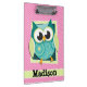 Cool, chevreau coloré, chouette turquoise verte en bois sur rayures roses et blanches, motif rayé. Un cadeau parfait pour bébé, tout-petits, enfants, enfants, ados ou adultes ! Personnalisez le modèle de conception en ajoutant le nom ou le texte personnalisé d'un enfant. Visitez notre magasin, Birthday Party House, pour plus de produits de fille personnalisables!