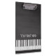 Customisez ce panneau d'agrafe avec votre propre information. L'arrière - plan de tableau ou de tableau noir comporte un clavier qui regarde pour être dessiné hors de la craie.