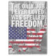 Stay organized with bold patriotism using the Freedom Job Clipboard. This impactful design features the statement “The only job I ever loved was spelled FREEDOM” above a distressed map of the United States filled with the American flag. Rugged textures and bold contrast evoke pride, sacrifice, and unwavering love for liberty.