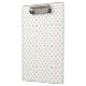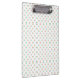 Two images of a clipboard with a repeating pattern of colorful diagonal stripes on a white background. The top image shows the front view, and the bottom image shows a left-side angle. The metal clip is visible at the top, giving a sleek and modern appearance.