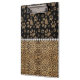 La conception de peau de léopard faite avec les taches brunes de léopard à l'intérieur des empreintes de pattes de grand chat sur un noir a coloré l'arrière - plan. Le centre est laissé pour la personnalisation/personnalise entouré avec des fausses pierres blanches de diamant. (Photo imprimée).