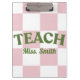 Porte-bloc Customizable Pink Checkered Teacher Clipboard