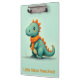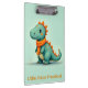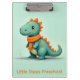A cute, little, green dinosaur wearing an orange scarf makes a darling clipboard for a classroom or preschool.
