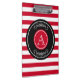 Design élégant monogramme en cercles avec décoration florale sur blanc et rouge rayé arrière - plan