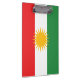Ce dessin est orné du drapeau du Kurdistan, qui est une région historique géoculturelle à peu près définie où le peuple kurde forme une majorité de la population et où la culture, les langues et l'identité nationale kurdes ont historiquement été basées. Géographiquement, le Kurdistan englobe à peu près le nord-ouest de Zagros et les chaînes de montagnes du Taurus oriental. L'utilisation contemporaine du terme se réfère aux quatre zones suivantes : sud-est de la Turquie (Kurdistan du Nord), nord de la Syrie (Kurdistan Ouest), nord de l'Irak (Kurdistan Sud) et nord-ouest de l'Iran (Kurdistan Est). Certaines organisations nationalistes kurdes cherchent à créer un État-nation indépendant composé de certaines ou de l'ensemble de ces régions à majorité kurde, tandis que d'autres font campagne pour une plus grande autonomie à l'intérieur des frontières nationales existantes.