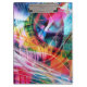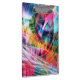 A vibrant explosion of colors and dynamic lines creates an abstract composition full of energy and movement. The interplay of bright hues and sharp angles draws the eye in various directions, creating a sense of depth and complexity.