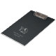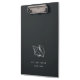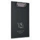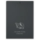 Island chic porte - bloc personnalisé dispose de deux lignes de texte personnalisé en lettrage blanc classique, sur un arrière - plan noir doux et riche orné d'une illustration en coquille de conque tropicale en feuille d'argent faux. Le design se répète à l'envers. Ajoutez votre nom ou nom d'entreprise à cet élégant porte - bloc à l'ambiance moderne de la plage.