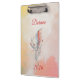 This personalized mini clipboard features a delicate hand-drawn feather intertwined with botanical details, set against a soft watercolor wash in warm peach and golden tones. The flowing script name at the top makes it a thoughtful and refined keepsake — perfect for journaling, planning, reflections, or creative writing.