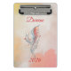 This personalized mini clipboard features a delicate hand-drawn feather intertwined with botanical details, set against a soft watercolor wash in warm peach and golden tones. The flowing script name at the top makes it a thoughtful and refined keepsake — perfect for journaling, planning, reflections, or creative writing.