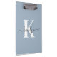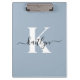 Ce porte - bloc simple et élégant bleu poussiéreux de 12,5 x 9 avec votre prénom dans une police de script tendance en noir et votre première initiale dans une police de casquette moderne en blanc est parfait pour vous. C'est design, tendance et pourtant très classique. Il sera utile dans tant de situations. Parfait pour le travail, la maison, l'école.