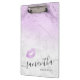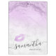 Porte - bloc de maquillage élégant et élégant, avec texture de marbre de parties scintillant faux violet, jolies lèvres violettes et police de calligraphie élégante.