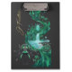 A sleek and functional clipboard featuring a striking beetle design set on a vibrant emerald island. The deep black background enhances the rich green tones, creating a bold and elegant contrast.