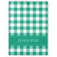 Porte - bloc motif classique vert et blanc à carreaux en vichy avec une impression de nom personnalisée à l'avant et à l'arrière. Papier à lettres correspondant disponible.