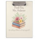 Ajoutez du charme et de la fonctionnalité à votre espace de travail avec ce beau porte - bloc, qui présente une illustration d'aquarelle douce de livres empilés surmontés d'un délicat bouquet floral pastel. Un cadeau parfait pour les enseignants, professeurs, bibliothécaires ou toute personne qui apprécie un mélange d'organisation et d'élégance. Customisez-le avec le nom de votre enseignant (Mme Anderson, par exemple) ou une citation motivante pour créer une appréciation particulière de l’enseignant ou un cadeau de retour à l’école. Qu’il soit utilisé dans la salle de classe, au bureau ou à la maison, ce porte - bloc rend la paperasse un peu plus joyeuse. Caractéristiques 📋 : Plateau de haute qualité avec impression frontale couleur pleine pile de livres d'aquarelle et d'oeuvres d'art florales Option pour personnaliser avec nom ou message court Clip standard pour tenir des papiers Idéal pour les enseignants, les entraîneurs, les étudiants ou les professionnels de bureau Inspirer, enseigner et rester organisé — le tout avec une touche de beauté artistique.