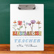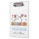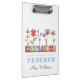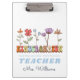 Le porte - bloc de l'institutrice de jardin d'enfants personnalisé avec son nom et la citation "Apprenez-les, aimez-les, regardez-les grandir". Design avec de mignons fleurs sauvages colorés sur un arrière - plan blanc.
