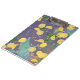 A unusual design of falling oranges, the background is a grey-purple then comes the turquoise paint splatter with yellow splatter and gold rain drops and gold stars, finally you have the falling oranges and green leaves. Making this very unique look on this clip board. The design was created digitally.