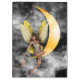 Une belle fée s'asseyant sur la lune orange parmi les nuages dispersant la poussière féerique. Disponible sur des couleurs multiples d'arrière - plan pour la plupart des produits.