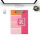 Des rayures de couleurs douces à roses et oranges avec votre Monogramme. Porte - bloc avec des couleurs éclatantes pour plus de plaisir à travailler.